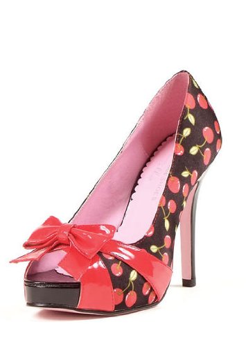 Check Out Sexy Adult Women Tart, 4" Satin Cherry print open toe pump w/red patent bow 6 BLACK/RED By Leg Avenue For Discount Price.